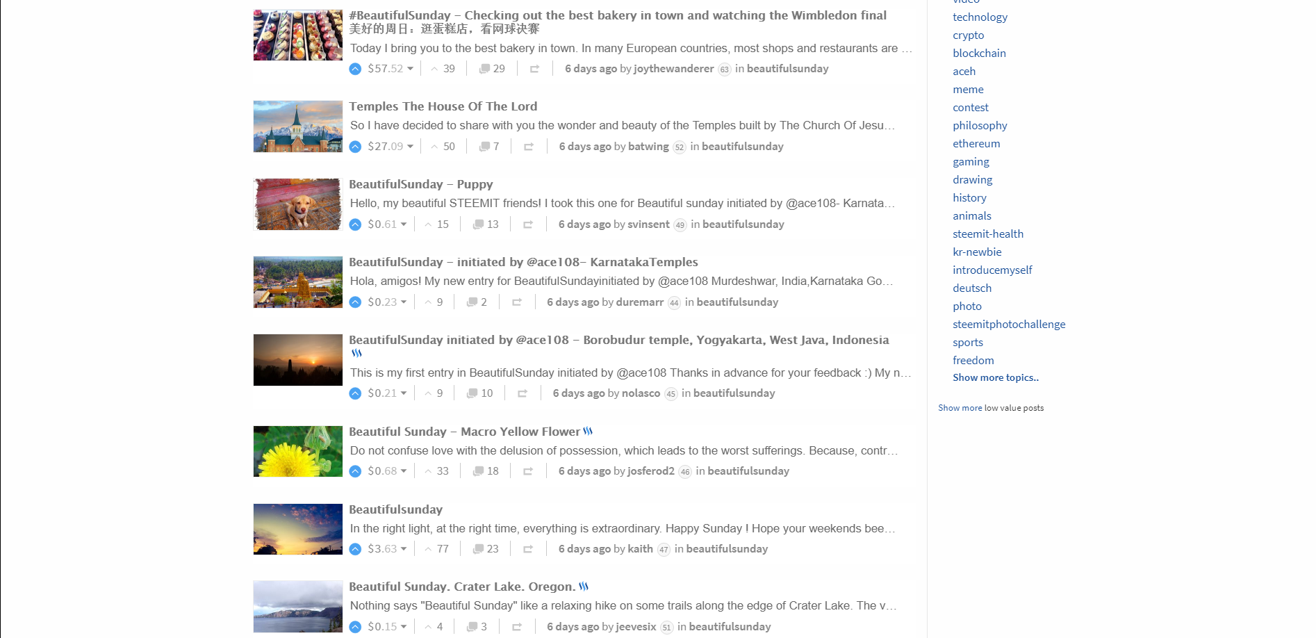 现在,又来报道上周日的#beautifulsunday结果。 首先再次强调,有些帖子我没算达标。如果你的帖有少于2张图片或不是在星期天发布,我就认为不符合规则。 好消息是,我已经学会使用steemsql.com来找出美丽星期天#beautifulsunday的帖,并按待回报率排序。更好的消息是,为了庆祝这小工程,我已经点赞所有谁发布了#beautifulsunday帖无论是否符合资格,但这将不会是后来版本#beautifulsunday的惯例。 无论如何,这里是证据。