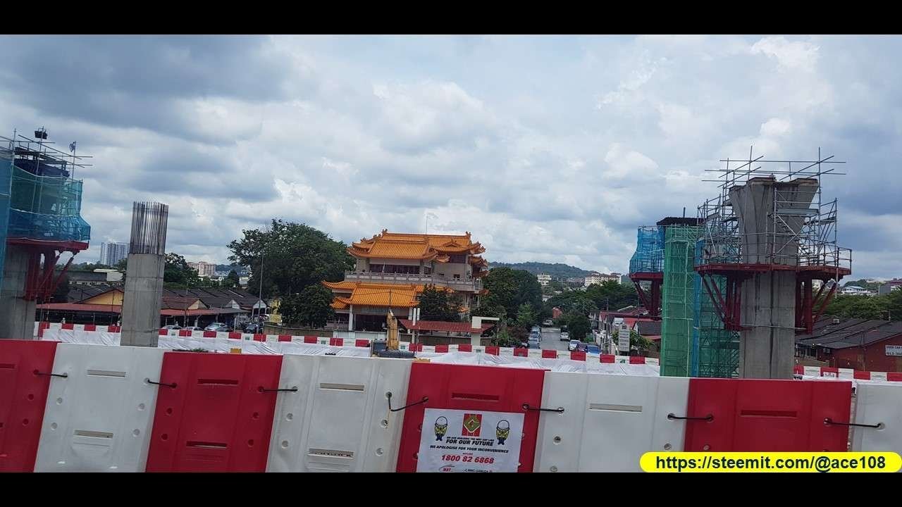 经过这过寺庙而在那外面可见到一些交通结构在建设中。