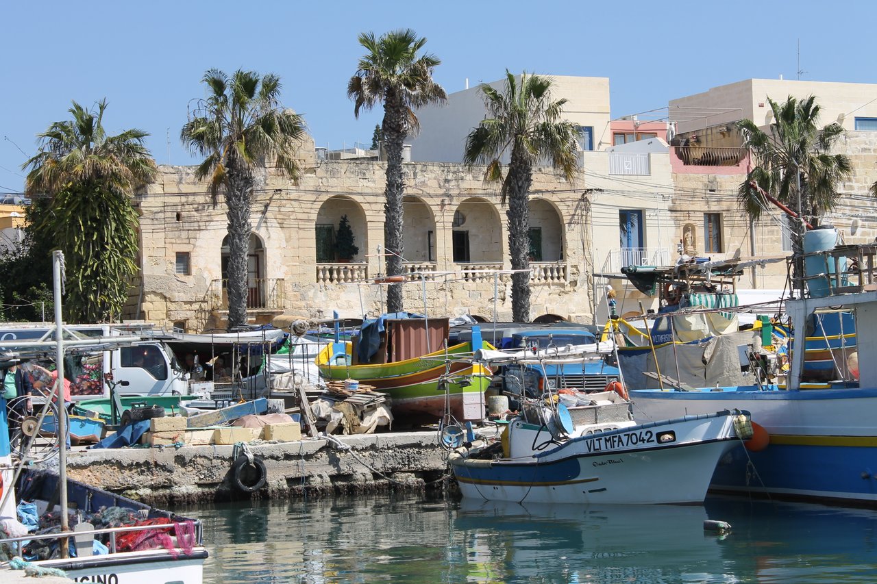 Für heute ist ein malerisches, farbenfrohes Fischerdorf, Marsaxlokk in Malta. Kleine Fischerboote durchziehen die Bucht, ebenso wie Restaurants, die mit frischem Fisch überhäuft sind.