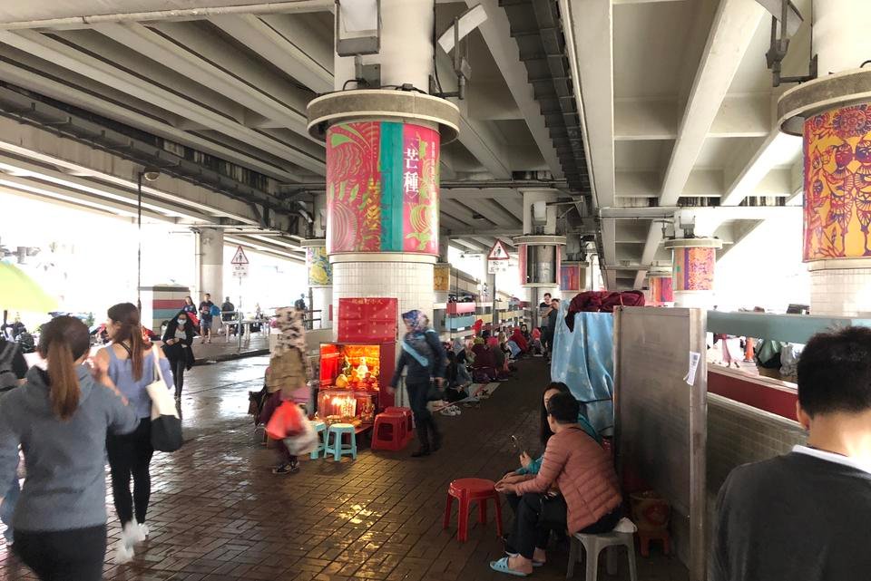 wow .., hongkong is steady .., under the bridge there is a market .., I like., not the same as in Indonesia., in indonesian people selling under the placement constantly evicted