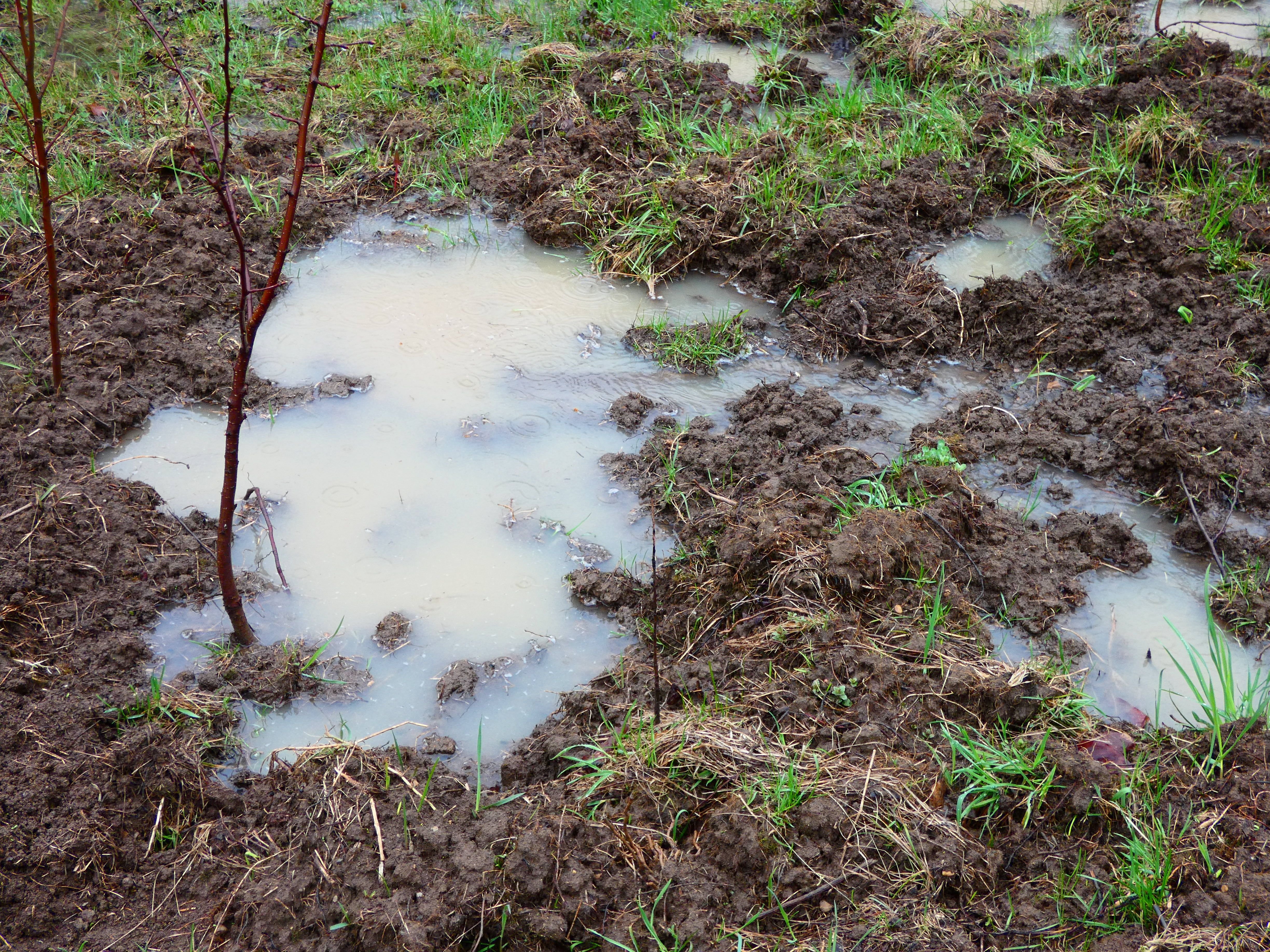 Beautiful muddy Easter Sunday with streams and a waterfall in the garden