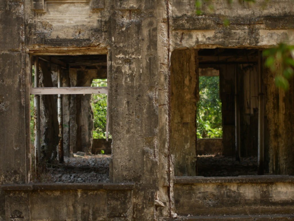 The ruins is located in the middle of the island and was built in 1915 for the 60th artillery anti aircraft company, US army, 91st Coast artillery and the Philippine scouts. Advanced concrete construction was used in the two buildings that each has three stories. Each floor had high ceilings and sliding windows made from capiz shells were used. Capiz shells has been used for windows in the Philippines for centuries now. An influence during the Spanish colonial period and is still being used in some architecture today.
