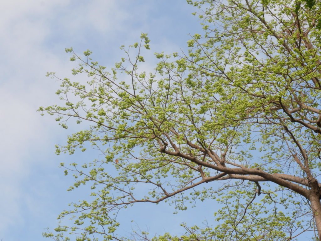 This is the farthest my zoom lens could reach but if you would zoom in to the photo. You would see green bulbs that has not bloomed yet into the green flowers. I am not sure how many times it blooms per year, but I guess we got lucky to see the mysterious star shaped green flowers fall from the giant tree.
