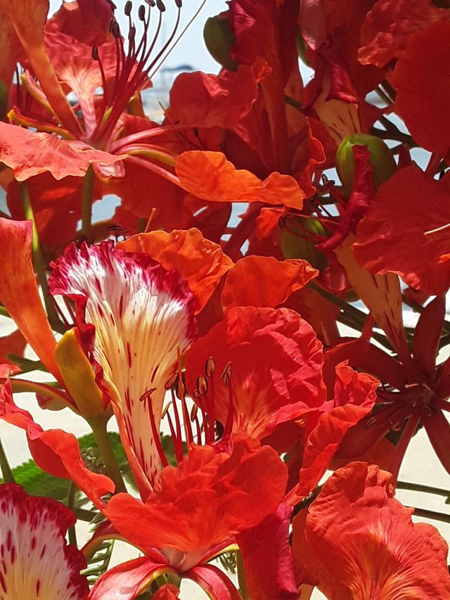 Esta hermosa planta ornamental es conocida como El Flamboyan, es uno de los árboles tropicales que goza de más popularidad. Su copa aparasolada y sus increíblemente flores, hacen de él una planta muy llamativa. y más coloridos del mundo por sus flores rojas, anaranjadas, lilas, y también por su follaje verde brillante.