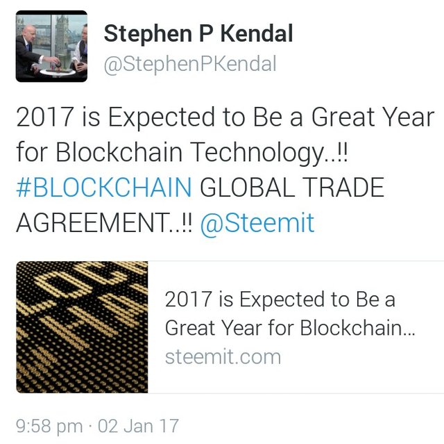 "GLOBAL BLOCKCHAIN TRADE AGREEMENT" is a term that you will be hearing quite a lot of in 2017..!! A "Once in a Century Global Game Changer"..!! Tweeted. Stephen