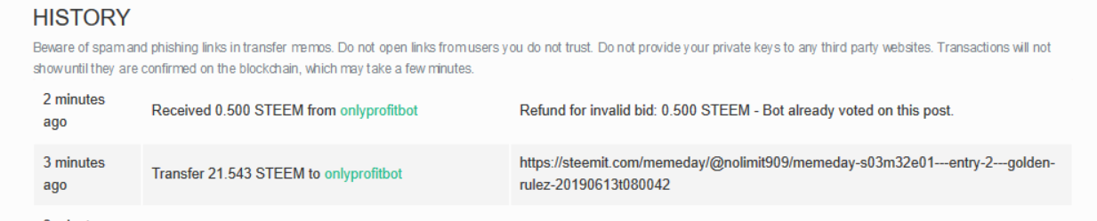 You are viewing a single comment's thread from:RE: Steem blockchain resumed operation. So does delegator's payout.View the full contextxcaliper (65)in #bidbot • 6 years ago Hi I made a mistake bid where I slipped my digits and sent you 21 steem instead of .21 steem' The bot recognized it and sent back only .5 steem please refund the 20.5 steem , (see the attached transactions from my wallet) thank you.
