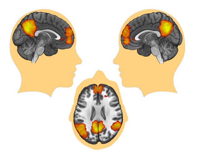 If the default mode, social cognition and hierarchical self-reflection, the emergence of "self" relative others in a pack, roles, evolved for Homo canis to stay in "consensus" with other members in the pack, and was later co-opted for eusocial belief systems, then what happens as the internet, social media, math-based law on the web 3.0, AI, creates a world where everyone is connected as everyone else?