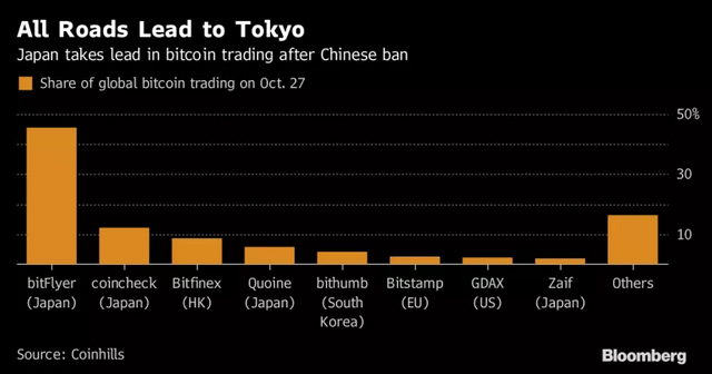 sources https://www.bloomberg.com/news/articles/2017-10-26/china-s-cryptocurrency-barons-seek-new-life-in-japan-hong-kong