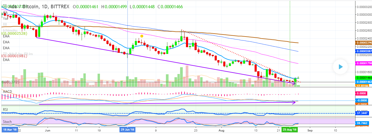Looking at the long term chart for ADABTC , you can see the profits potential in green. Here is the chart:
