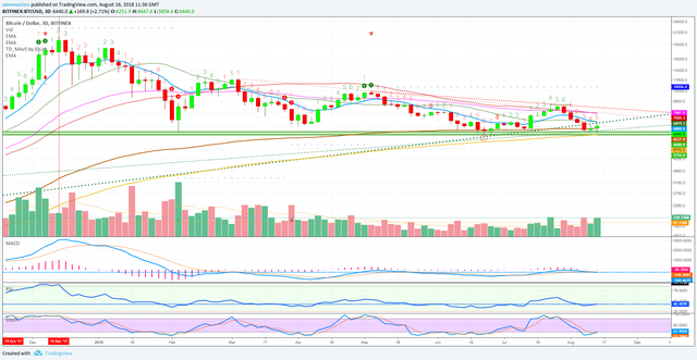 After Bitcoin's last wave up all the way to ~$8500, we had a major retrace. This retrace was very strong and fast and the price bounced after hitting $5858.6 on the 14th August.