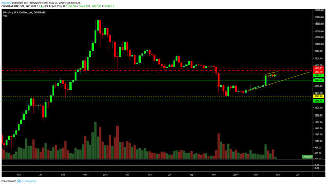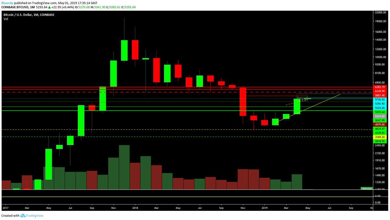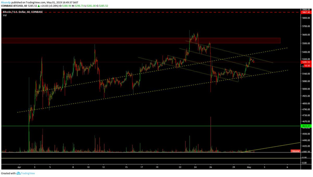 Bitcoin monthly and weekly viewaltumanimo (47)in #bitcoin • 6 years ago BTC has broken resistance & closed above it. Above MA 20 Volume Perfect Close above important 4,900 USD and EMA9 and EMA21 Over all Bullish Market Sentiment Whales are on the bulls side at the moment BTC 1H view #cryptocurrency #crypto #blockchain