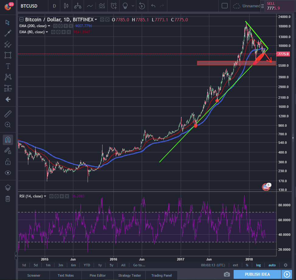 With that said, i dont like to be the bearer of another bad news but it seems like we have had a downward breakout too on daily log chart which means that we are likely to head to $6000 range for Bitcoin, W bottom is expected.