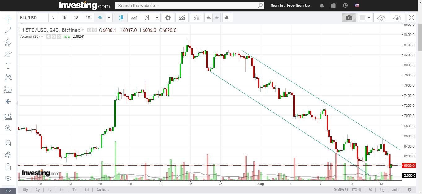 today we have bad news for you. As crypto giant BTC - bitcoin crashed -6.36% and tanked under 6000$ level, as the cryptocurrency market cap falls below $200 billion, losing more than 25 percent value in a week. This horrified data shows how massive selling has been happening nowadays, Bear has made bitocin bloodbath as bulls are not able to shows it powers anymore.