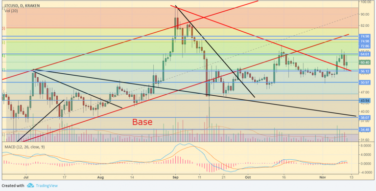For Litecoin after hiting 64 USD, it's go into a short correction around 57 USD, you can make a buy orderfor litecoin around 59 USD, the long term target will be 72.5 USD to 82 USD with a stop lose around 55 USD .