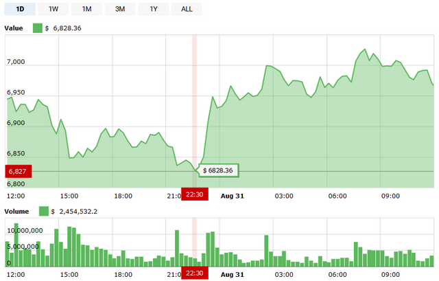 Purchasers stayed in charge and drove the cost back above USD 6,900 and USD 6,950.