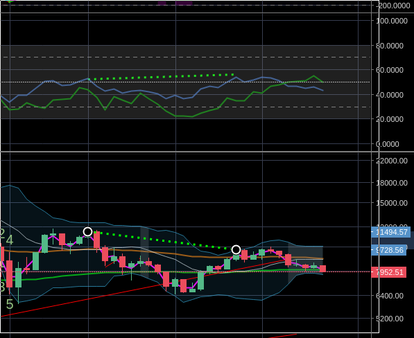 Check how volume declines with rising price on a 12 hour chart - not bullish at all. The market is still in a crash pattern. It's is going to test 7200 soon. It may bounce there, but there's a high likelihood that we will see 5k before 10k.