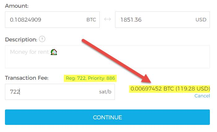 I just paid $119.28 for a Bitcoin transaction using the Blockchain.info wallet...