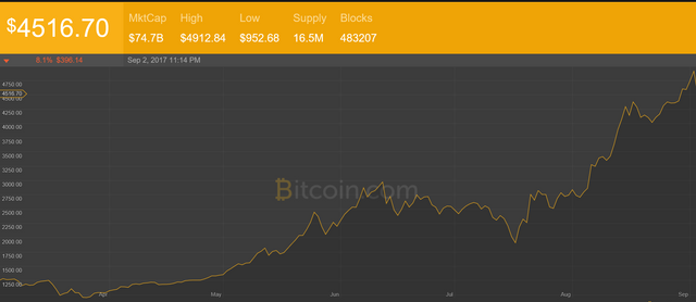 So what happened 2 months ago? To refresh our memories, lets look a t the graph of BTC prices versus the US Dollar.
