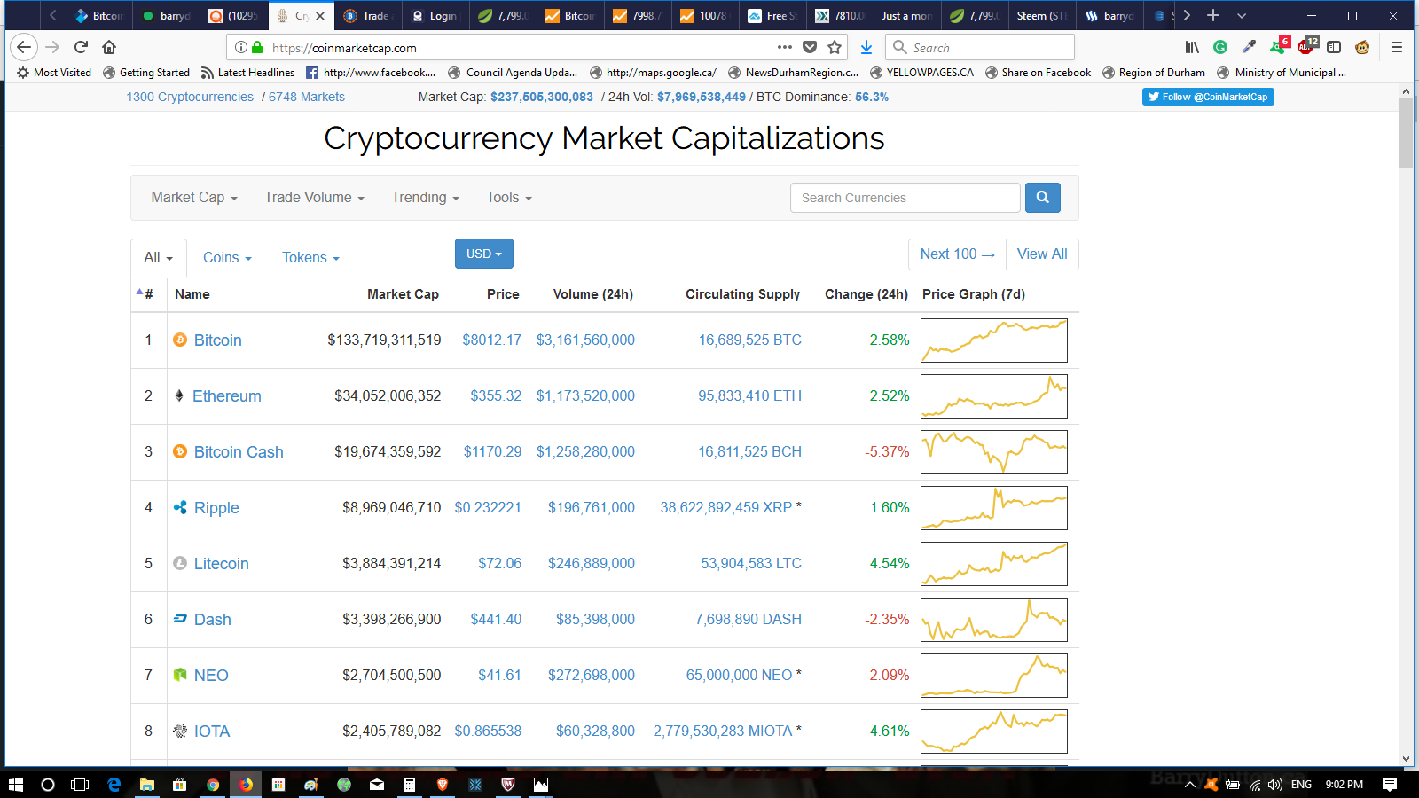CryptoCurrency Market Update / Overview. Nov. 19th 2017