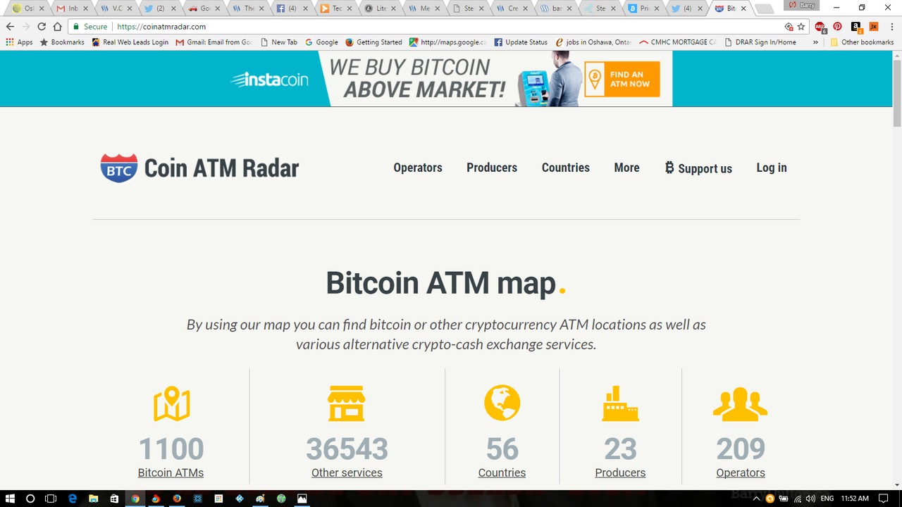 Number of Bitcoin ATM's in the world steadily growing. (1100+) - I cross referenced data for you today here on this. Maps, links, etc.
