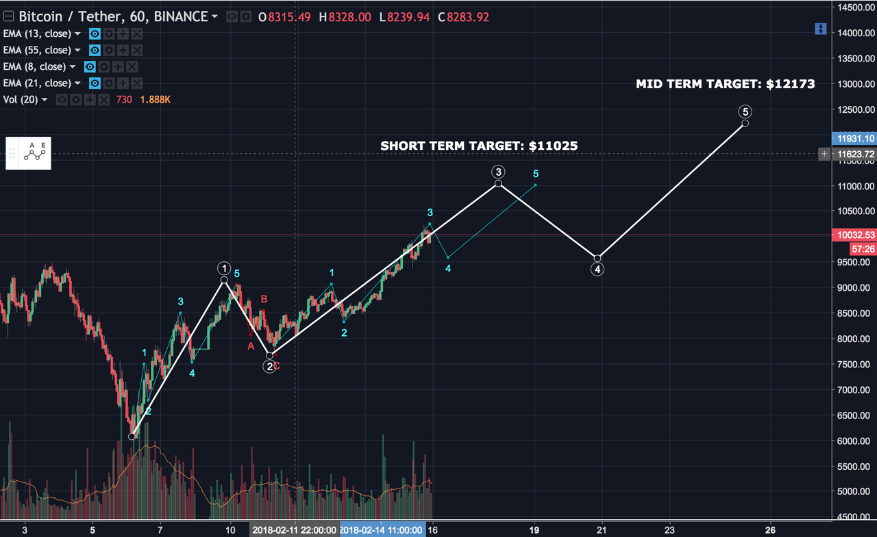 Short update here. Here's a new count based on new data. Things will get clearer as soon as we end the 3rd wave. My first target will be $11025 assuming that we've ended a 3rd subwave of wave 3.