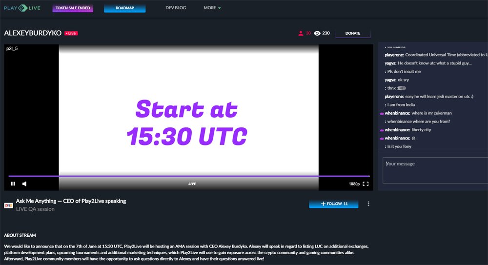 We would like to announce that on the 7th of June at 15:30 UTC, Play2Live will be hosting an AMA session with CEO Alexey Burdyko. Alexey will speak in regard to listing LUC on additional exchanges, platform development plans, upcoming tournaments and additional marketing techniques, which Play2Live will use to gain exposure across the crypto community and gaming communities alike. Afterward, Play2Live community members will have the opportunity to ask questions directly to Alexey and have their questions answered live! The AMA session will be broadcast on p2l.tv -- a link will be sent to the community before the translation begins.