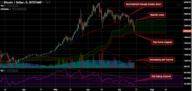 Bitcoin price has seen heavy selling. If we see continued decreased sell volume and the $1900 support holding, we could see a strong bounce. If $1900 fails then RIP and see you much lower.
