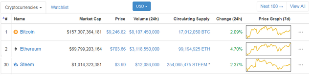 There is no impossible that ETH would take the lead againt all the Cryptos if the bullish will continue. In the long run of Crypto, Steem would definitely rise up and make it value to thousands of $/1, as you could see the cryptocurrency status would never be it's constant, in other words it's rise and fall but now the ETH made the highest percent of the increase of value among the three currencies.