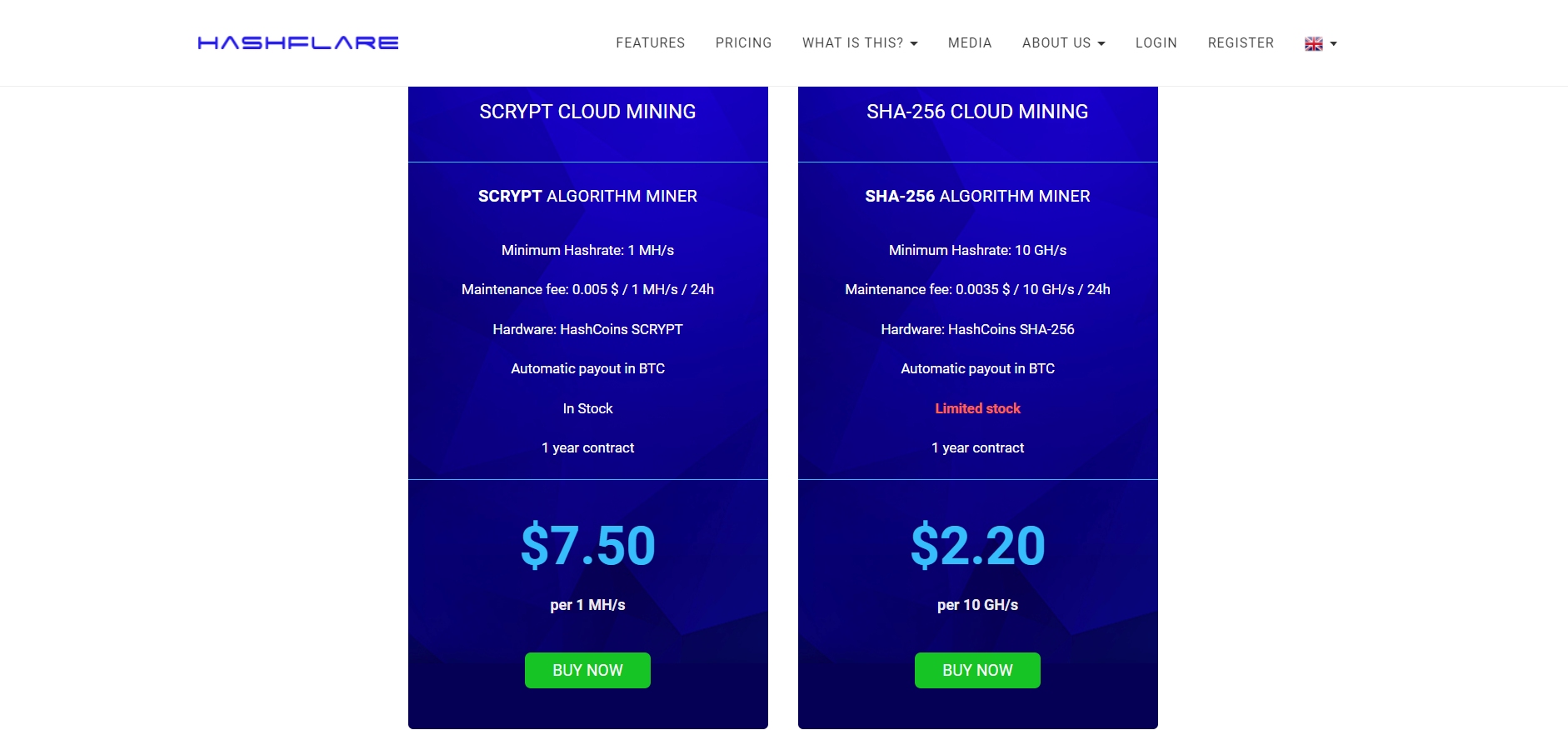 Esta minera en la nube esta trabajando desde el 2014, y es de las que posee menor coste por Ghz de poder de minado, puedes empezar a minar invirtiendo solo 2,2$.