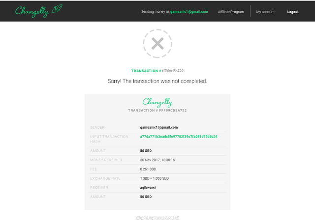This transaction failed. Can you push it through or refund it PLEASE.