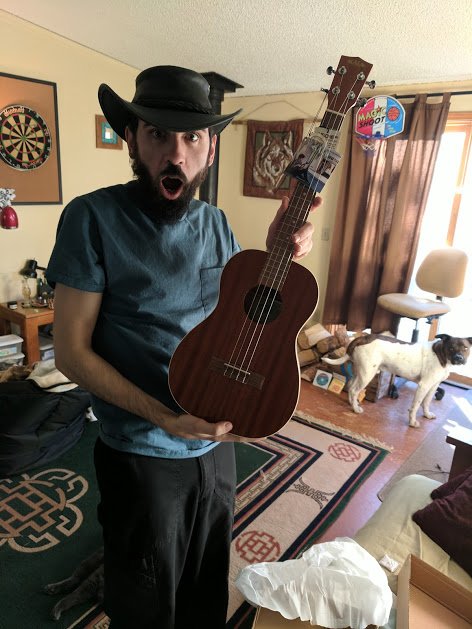 A brand-spanking-new mahogany baritone ukulele would be exciting enough by itself, but this delivery is monumental. Why? It's the first thing I've ever bought with bitcoin.