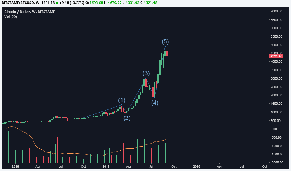 İndikatörler de artık dönüşün geldiğine işaret ediyor. 4900lü fiyatlarda da bu işaretler vardı zaten. Peki şimdi neler olabilir? Bunun üzerine birkaç teorim var. Öncelikle BTC şu anda teknik analizin en güzel çalıştığı coin. Buna dayanarak Elliot Dalga Teorisinin de güzel çalıştığını düşünüyorum, günlük grafikte de bu durum gözlemlenebiliyor. Şu an yapmamız gereken şey elliotun hangi dalgasında olduğumuzu keşfetmek. Bununla ilgili 2 adet teorim var. Birincisi şuanda bitcoinin elliot impulse fazını tamamladığı yönünde;