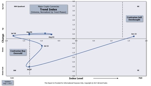 Major Crypto Currencies | Trend Index | 170807coinztrader (35)in #bitcoin • 8 years ago Stalling index recovery; $BTC strong vs altcoins. Click here for a larger chart. #cryptocurrency #altcoin