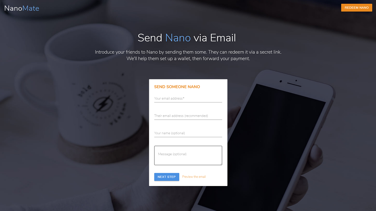 Hi Steemers... I wanted to quickly introduce you to NanoMate; an application built on top of Nano/Raiblocks... https://nanomate.co/ NanoMate is a way to send Nano to your friends via email/sms/whatsapp etc... This is how it works
