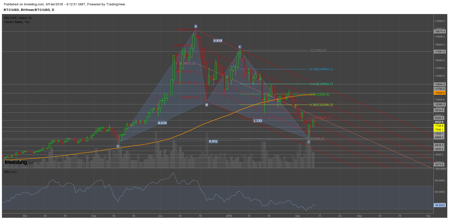 Bitcoin'de Gartley Formasyonu / 09.02.2018