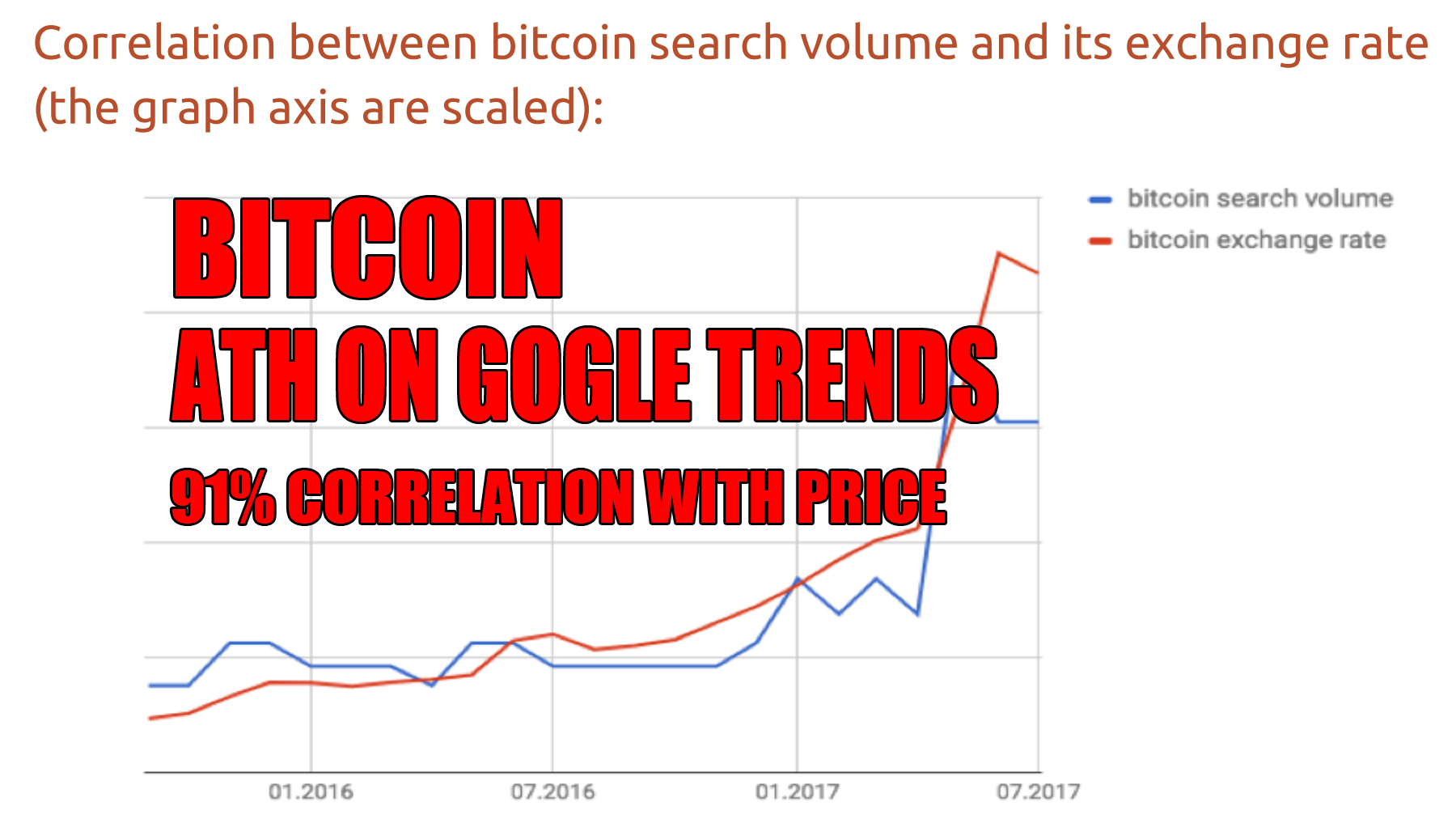 Bitcoin ATH on Google Trends - 91% strong correlation with its price