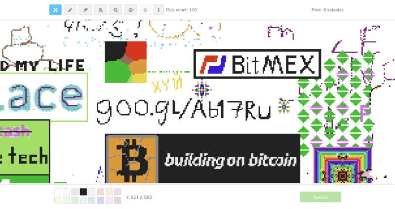 The website is called satoshis.place and it consists of an uncensored and, thus super fun, artboard where you can buy individual pixels by using Lightning Network Micropayments.