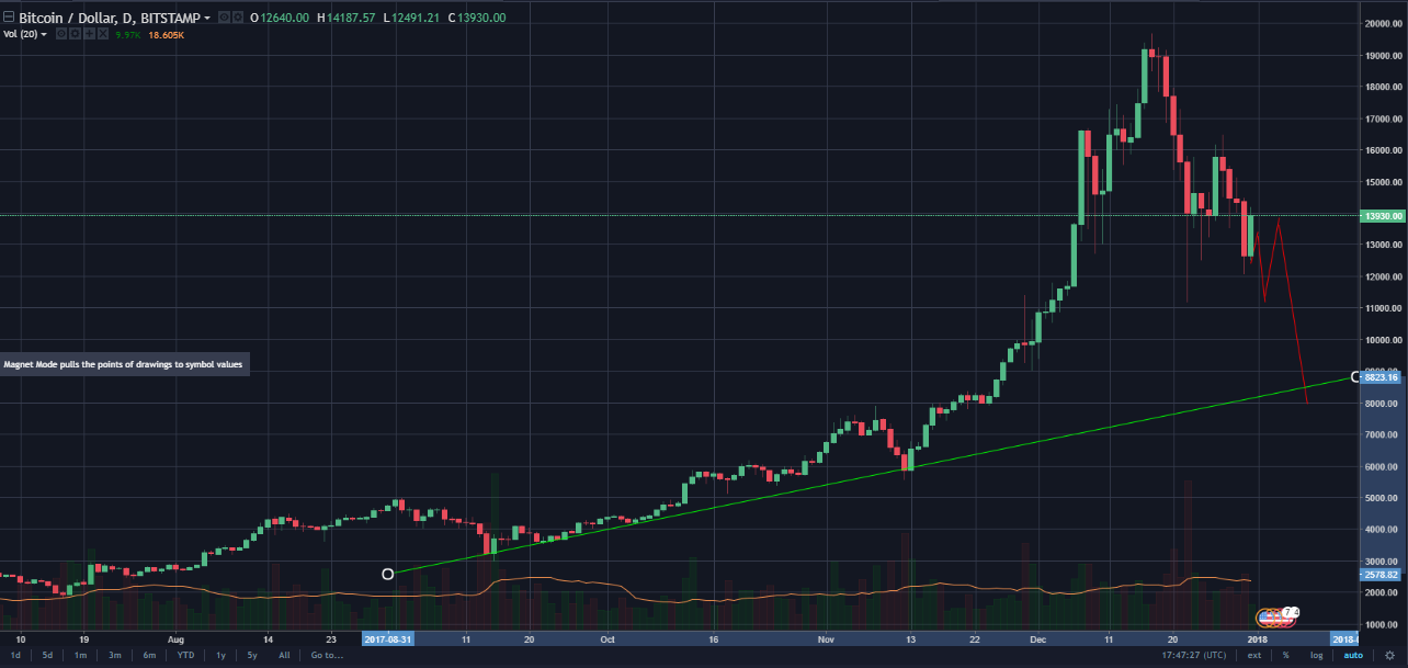 It's no doubt in my mind that Bitcoin can and will go higher in the long term. But before that happens, there needs to be a massive downturn like there has always been in every Bitcoin bull market. If you look at the chart, you see that a reversion to the mean has to take place. If you've been studying markets long, you must know that no market can go in an upward direction forever and still be a wise investment. Bull and bear markets must take place.
