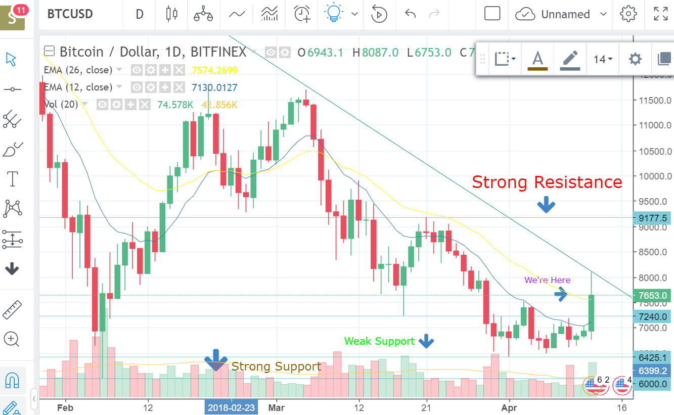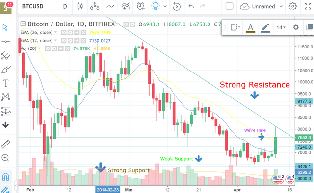 Although, BTC has broken a short-term support $7400 but still a strong support at $9050 still remains. And in order to change the overall Bearish trend into Bullish, BTC has to cross $9000 level.