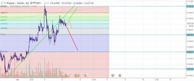 Let’s have a closer look at what’s happening on the hourly chart. The currency pair had a deep downside correction on Monday and Tuesday but managed to cross $0.6515 and several retracement levels. XRP/USD failed to jump over the green ascending trend line, but was close to it. Ripple seem to establish a bullish flag currently meaning the currency pair will be able to develop its upside tendency. What are the possible ways for XRP/USD?