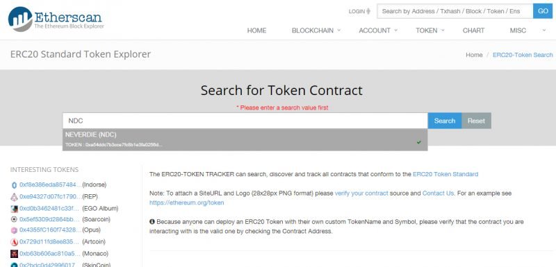 You can use this great website Etherscan.io to find the information about your token, including the contract address which will be necessary to find your tokens! This is a great free resource for finding token information and when I bout my first ICO tokens I went here to find my token's contract address. Just toss in the name of the token in the search box and you should get a suggestion for your token. It will show you that all important "contract address" for your token. In my case it was for NDC and the contract address is 0xa54ddc7b3cce7fc8b1e3fa0256d0db80d2c10970. Copy this info and lets save it for the next step.