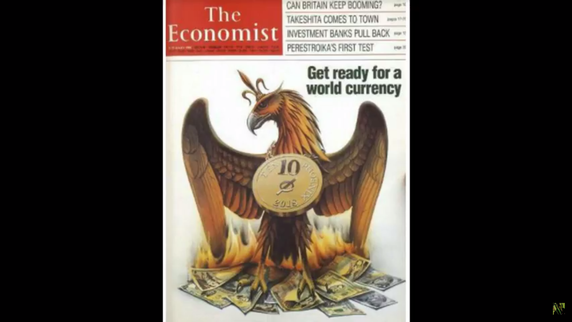 We have a prediction that was made almost 30 years ago coming true before our very eyes. The January 9, 1988 Vol. 306 Edition of the Economist was clearly depicting and called for what is happening right now, ahead of 2018. In the article they state that 30 years from now(1988) countries of the world will all shift to a new use of currency. They also depicted this showing a Phoenix rising from the ashes of the burning currencies. It also has a very telling detail that connects it to what we are seeing today. It has a huge Crypto Coin on its chest. Showing that they knew back then what was to come, and even said it.