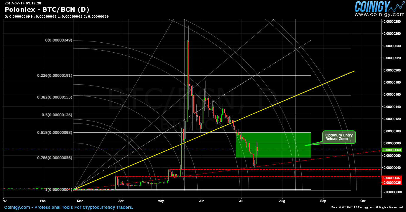 I just made a small investment (2%) ... it appears that bytecoin is bottoming out. Keep in mind bitcoin is still falling and may fall for weeks to come, bitcoins contraction is causing volatility in the Alt- coin markets and prices may drop further... I like this coins projection.