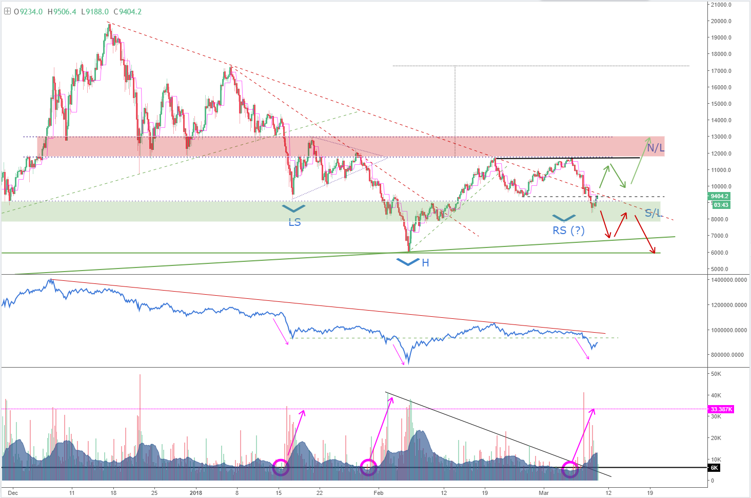 For this small rally to be sustainable, the price needs to trade above about $10,000 and we might then see another run on the overhead resistance zone (at $12,000):