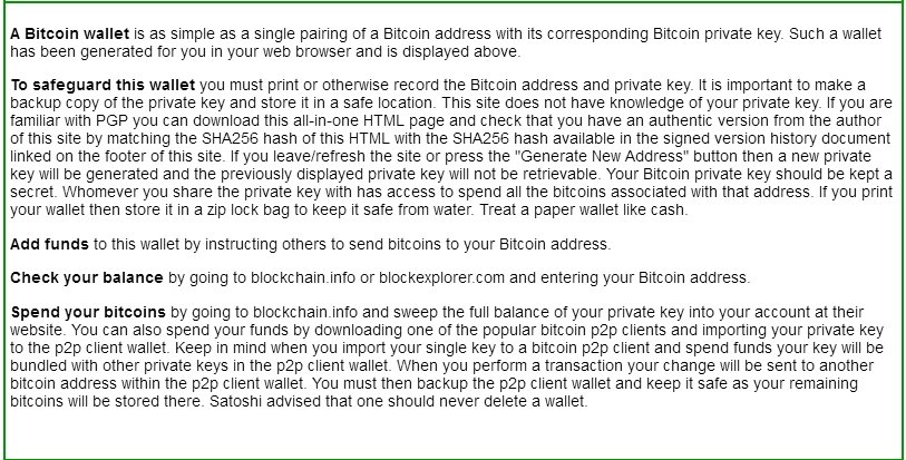"Print your wallet then store it in a zip lock bag to keep it safe from water. Treat a paper wallet like cash "
