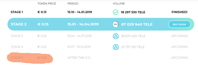The fifth ICO period TELE cost will reach 0.25 euros.