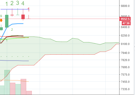 - the midline of the corridor and $8 000 level can both be support and resistance levels.
