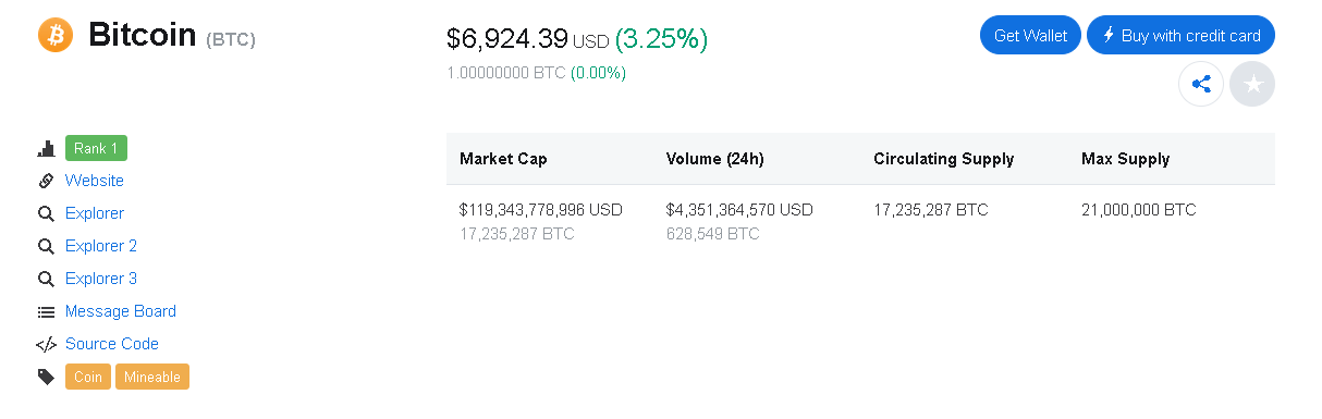 Right now I just checked the price and I'm glad to see that it's very close to being around $7,000. Right now it's at $6,924 and has gone up by 3.25% in the last 24 hours. I am very happy to see the price close again, but I just hope that it's able to go up again near $8,000.