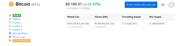 I am glad to see that the price of bitcoin has gone a little bit up since yesterday. I still think it's at a low price, but I just hope that it doesn't keep going lower. Right now it's at $6,168 and has gone up by 0.42% in the last 24 hours.