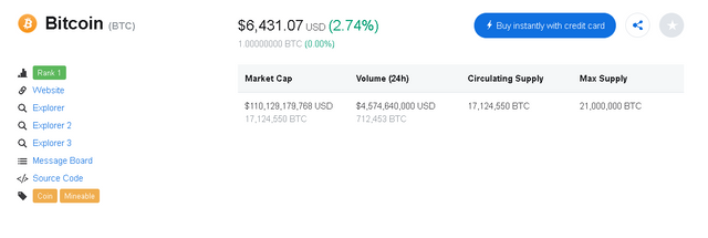 I'm glad to see that the price of bitcoin has gone up again today. The price is now up to $6,431 and has gone up by 2.74% in the last 24 hours. I still can't believe that a few days ago the price went down under $6,000 so I'm glad to see that it has recovered a bit.